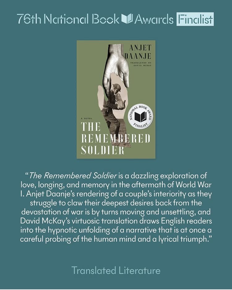 THE REMEMBERED SOLDIER is also named one of The 10 Best Books of 2025 by the The Wall Street Journal which praises how Anjet Daanje’s “incantatory prose, translated by David McKay, makes ordinary aspects of marital life feel newly discovered.” It’s the latest honor for THE REMEMBERED SOLDIER that’s been named to The New York Times 100 Notable Books of 2025—Publishers Weekly 2025 Best Books of the Year—Chicago Public Library Best Books of 2025—The New York Times “The Best Historical Fiction Novels to Read Right Now” and Literary Hub‘s 100 Notable Small Press Books of 2025.